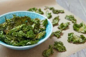 Place the kale on the baking sheet and bake until the edges brown but do not burn, about 10-15 minutes.